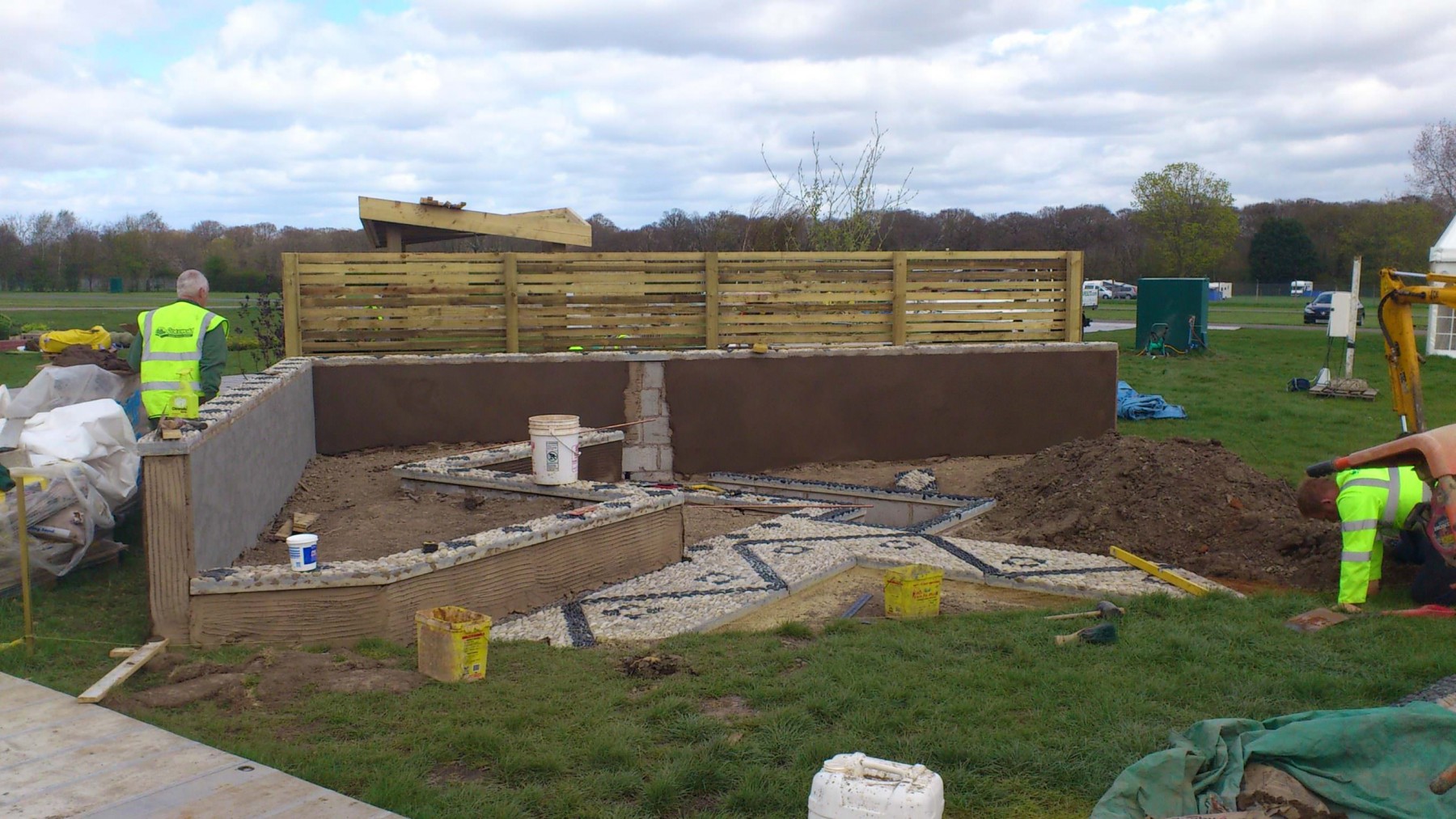 - The team from Cotswold Estates & Gardens start on the build, walls go up and the pebbled paving is laid.