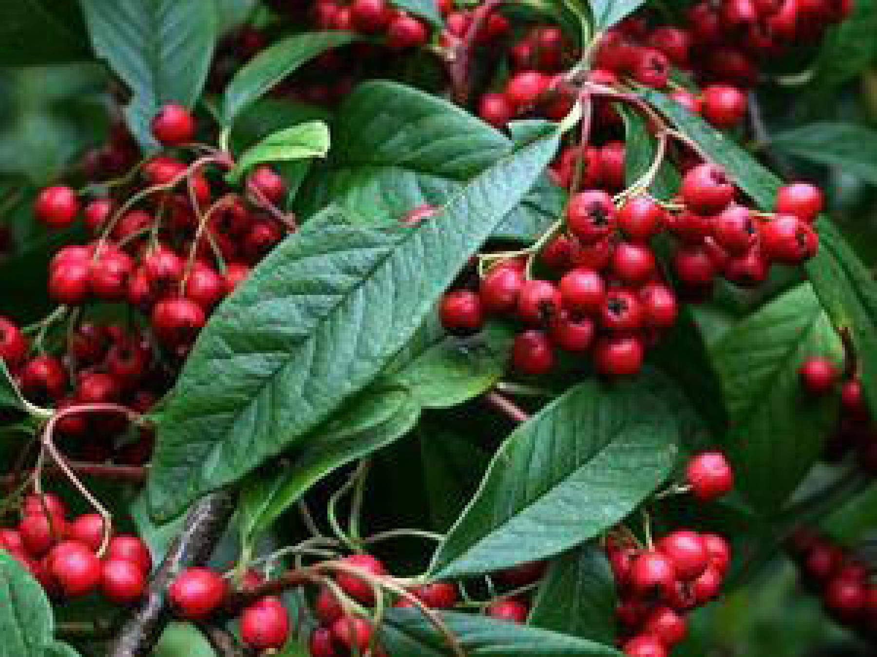 Cotoneaster frigidus ‘Cornubia’ – large semi-evergreen shrub with elliptic dark green leaves and red berries in autumn.